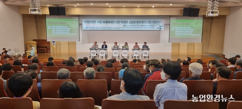 먹거리 위기시대, 미래세대를 위한 먹거리 공공성 어떻게 보장할 것인가, 라 주제로 정책 세미나가 지난 2일 오후 1시 30분 국회 도서관 지하 1층 대강당에서 열렸다. 소병훈 국회농림해양수산위원장 등 12명이 국회의원이 주최하고, 전국먹거리연대, 환경농업단체연합회, 한국친환경농업협회, 농정전환실천네트워크, GMO 반대 전국 행동 등이 공동 주관으로 열린 이날 정책토론회에서는 임산부 친환경농산물 꾸러미 사업과 초등돌봄 과일 간식 사업 예산 복원을 촉구하기도 했다.