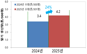 전북특별자치도 완주 딸기 재배 농가에도 현장 진단 처방법을 2년간 적용, 경운깊이를 깊게(27→40cm) 하고 겨울철 온도가 낮아 부족하기 쉬운 인산이온 농도를 높였다(4→17mg/L). 그 결과, 딸기 수량이 24% 늘어 농가 추정 수익액은 10아르당 550만 원 증가했다.