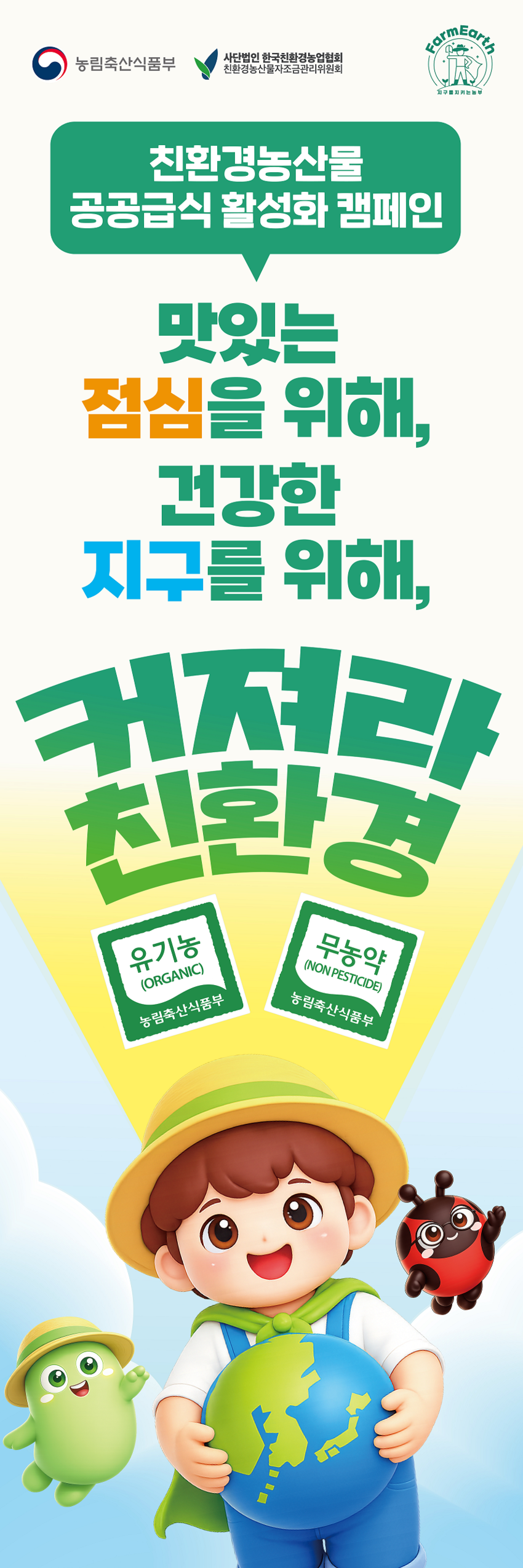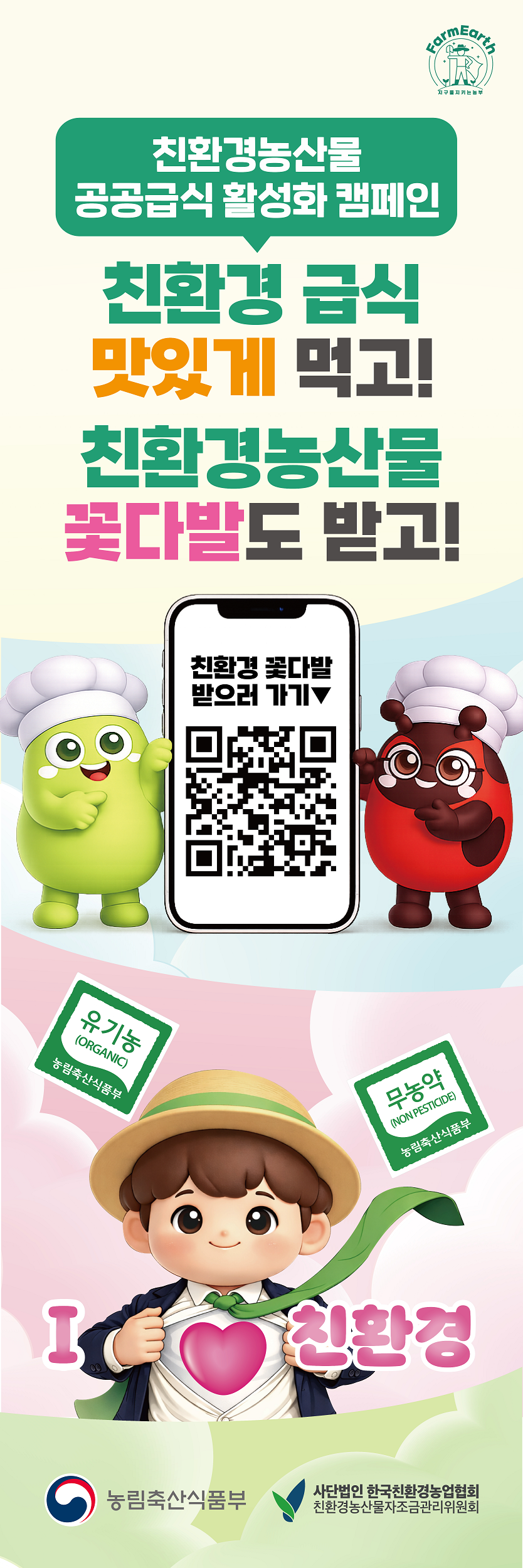 농림축산식품부에 따르면 이번 캠페인은 ‘I♥친환경’ 이라는 슬로건 아래, 공직자와 미래세대인 어린이가 일상에서 친환경 식단을 직접 체험하며 친환경농업의 공익적 가치를 확산하기 위해 마련됐다고 밝혔다.