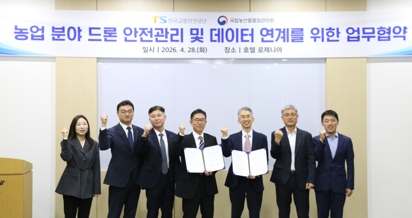 국립농산물품질관리원 (원장 김철, 이하 ‘농관원’)과 한국교통안전공단 (이사장 정용식, 이하 ‘TS’)은 농업 분야 드론의 체계적인 안전관리 강화와 항공방제업 신고 절차 간소화를 위한 업무협약(MOU)을 체결했다고 밝혔다.