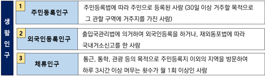 생활인구 제도는 ’22년 「인구감소지역 지원 특별법」 제정과 함께 도입된 새로운 인구정책으로, 지역 내 상주하는 인구가 갑자기 늘지 않는 우리나라의 현실을 반영해, 거주하지 않지만, 체류라도 할 수 있는 인구에 관심을 두게 된 것이다.