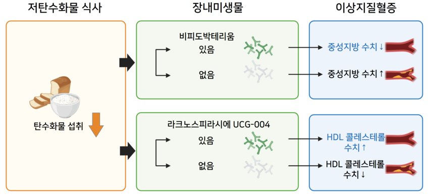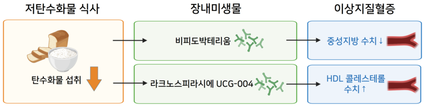 특정 장내미생물의 존재 여부에 따라 저탄수화물 식사가 심혈관계 질환의 위험요인인 이상지질혈증에 미치는 영향이 개인별로 다르게 나타나는 것으로 밝혀진 것이다.