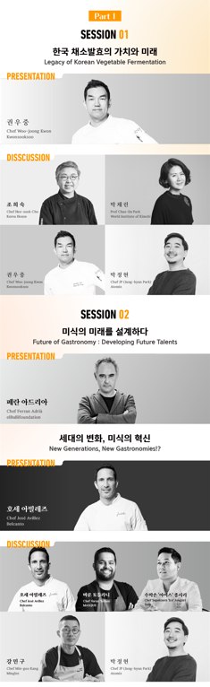 이번 행사에는 세계 분자요리의 거장인 엘불리 파운데이션 (elbulli Foundation) 창립자 페란 아드리아 (Ferran Adrià)와 세계적인 요리과학연구기관인 알리시아 재단 (Fundación Alicia)의 총괄이사 토니 마사네스(Toni Massanéss)를 비롯한 다양한 국내외 한식 대표 셰프와 연구자, 학계 등이 함께 참여해 한식의 가치와 미래에 대해 논의한다.
