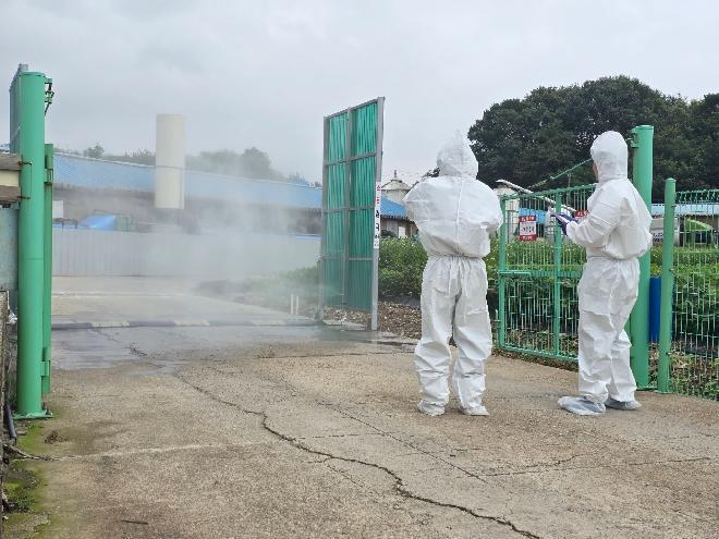 발생지역 내 바이러스 확산 차단을 위해 광역방제기, 방역차 등 가용한 소독 자원 31대를 총동원하여 충남 당진과 인접 3개 시ㆍ군(서산·예산·아산) 소재 돼지농장(313호) 및 주변 도로를 집중적으로 소독하고 있다.