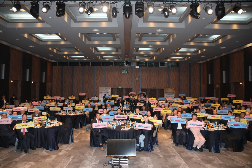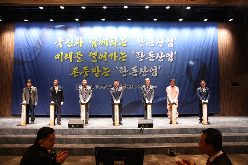 회장단이 무대 앞에 준비된 일곱 개의 버튼을 누르자, 무대 전면에 "국민과 함께하는 한돈산업, 미래를 열어가는 한돈산업, 존중받는 한돈산업"이라는 비전 슬로건이 새겨진 대형 현수막이 펼쳐졌다.