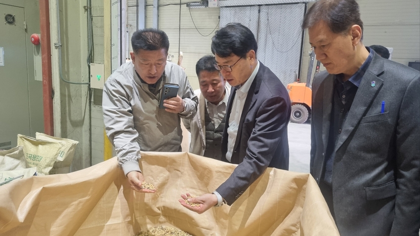 김정욱 농림축산식품부 농업혁신정책실장은 11월 26일 (수), 충북 괴산군에 위치한 ‘괴산 콩 스마트농업지원센터’를 방문하여 노지 스마트농업 시범단지 운영실태를 점검하고 현장의견을 청취했다.