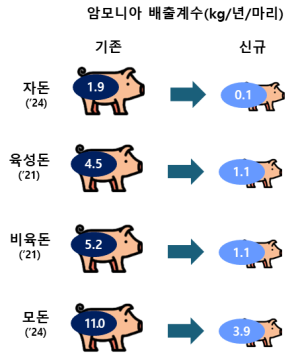 그동안은 2008년에 개발한 배출계수로 암모니아 배출량을 산정하다 보니, 국내 축산농가의 사육 규모 확대, 환기 방식 변화 등 현장 환경을 충분히 반영하지 못해 실제 배출량보다 과다하게 산정되는 경우가 있었던 것이 최근 새 배출계수 개발로 축산농가의 배출량이 감소할 것으로 예측된다.