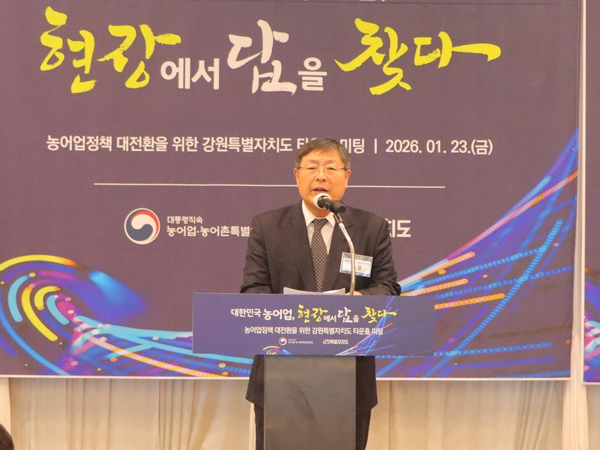 대통령직속 농어업․농어촌특별위원회(위원장 김호)는 1월 23일(금) 춘천베어스호텔에서 강원특별자치도 농업인과 함께하는 타운홀 미팅을 열고, 지역 농업 현안과 정책 개선 방향에 대한 의견을 수렴했다.