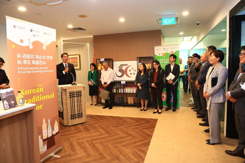 송 장관은 이후 2026년 K-푸드 거점공관으로 지정된 주싱가포르대사관이 주최하는 K-라운지* 개소식에 참석하여, 현지 한인단체장, 공공기관장, 인플루언서 등 주요 참석자와 함께 전시된 가공식품과 신품종 딸기(골드베리)‧포도 등 신선 농산물, 전통주 등을 둘러보았다.