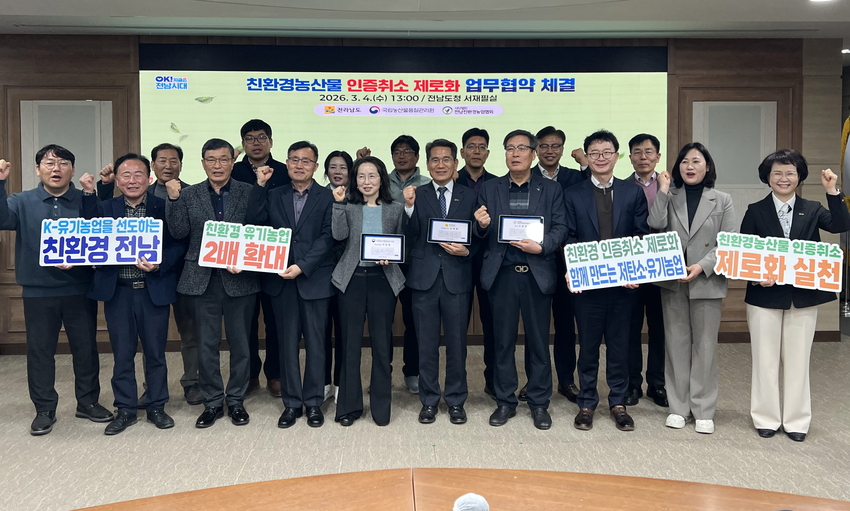 유덕규 전남도 농축산식품국장은 “생산자와 관리 기관이 ‘인증취소 제로화’라는 공동 목표를 위해 손을 잡았다”며 “사전 예방 중심의 촘촘한 관리 시스템을 가동해 농가 현장 지도와 교육을 강화, 소비자가 믿고 찾는 ‘청정 전남’ 친환경농산물의 위상을 굳건히 하겠다”고 말했다.