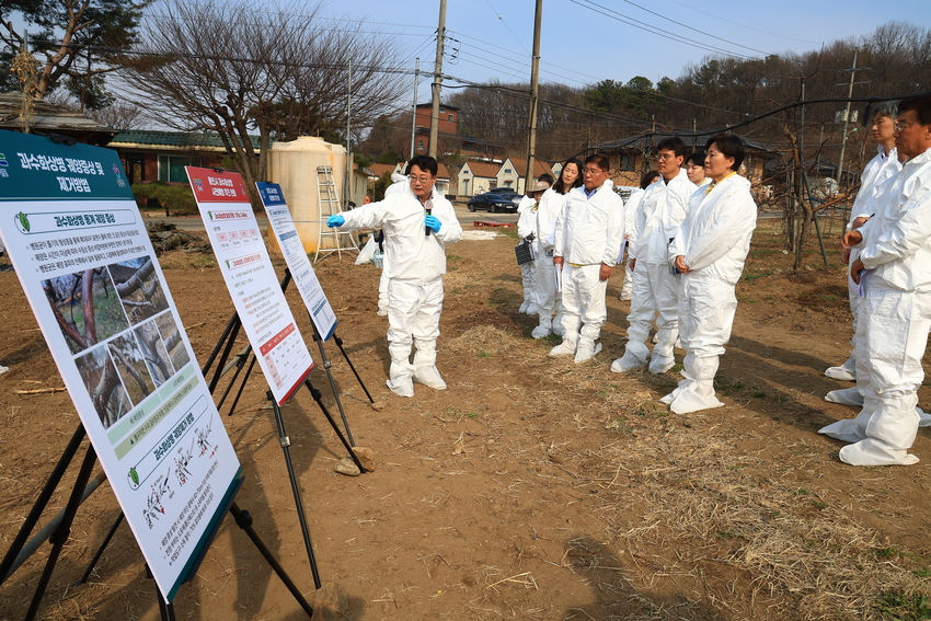 농림축산식품부 · 농촌진흥청 · 지방정부는 겨울철마다 과수화상병 사전 예방을 위해 전국 사과·배 과수원을 대상으로 병 잠복처인 궤양 제거를 집중적으로 추진하고 있으며, 올해는 2025년 11월 10일부터 2026년 4월 24일까지 사전 예방 중점 기간을 운영하고 있다.