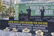기후위기 극복, 친환경유기농업 생산 · 소비 2배 확대를 위한 ‘2025 친환경 생산자 - 소비자 결의대회’가 지난 22일 서울 숭례문 앞 도로에서 2천여명의 친환경생산자들과 소비자들이 참석한 가운데 개최됐다. 사) 한국친환경농업협회와 환경농업단체연합회, 전국먹거리연대, 녹색소비자연대, 한살림연합, 한살림생산자연합회, 두레생협연합회, 가톨릭농민회, GMO반대 전국행동 등 9개 단체가 참석한 이날 결의대회는 전국농민대회의 사전대회로 진행됐다. 참가자들은 △ 친환경임차농부 피해 대책마련 △ 임산부친환경지원 예산 반영 촉구 △ 친환경직불금 확대 △ 역대급 폭염 · 폭우·병충해 등 재해대책 마련 △ 학교급식법 개정 △ 공공급식 확대△ GMO 감자 수입반대 △ GMO 완전표시제 즉각 시행 △ 먹거리기본법 제정 등을 촉구하면서 목소리를 높였다. 특히, 유령농부 복장을 하고 친환경 임차농부의 피해를 고발한 퍼포먼스는 “ 친환경 임차농 피해를 방관하는 농식품부를 규탄한다”며, " 실제 경작자인 친환경농부의 인증취소와 농지 이탈을 야기하는 불공정한 현실을 지적하고 정부의 책임있는 대책마련 등을" 촉구했다. 대회사에서 친환경농업협회 김상기회장은 “ 친환경유기농업 생산·소비 2