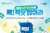 농협(회장 강호동) 상호금융(대표이사 여영현)은 농축협 모바일 금융 플랫폼인 ‘NH콕뱅크’ 앱을 통해「콕! 잭팟, 최대 5만 포인트를 잡아라」이벤트를 11월 30일까지 실시한다고 밝혔다. 이번 이벤트는 ‘NH콕뱅크’ 이용에 대한 감사 이벤트로 만 14세 이상의 고객이 콕뱅크 가입, 금융상품 가입, 준조합원 가입 등을 통해 기프티콕을 모아 응모하는 방식으로 진행되며, 50콕이 모일 때마다 1회 응모 가능하다. 본 이벤트를 통해 1인당 최대 5만 포인트가 경품으로 제공되는데, 응모 결과에 따라 12월 중 1,640명의 고객에게 NH멤버스 포인트 총 1,500만 포인트가 지급될 예정이다. 이벤트에 응모한 고객은 바로 당첨 여부를 확인할 수 있다. 여영현 상호금융대표이사는 “NH콕뱅크 이용 고객에게 감사한 마음으로 풍성한 혜택을 드리고자 준비한 이벤트이다 ” 며, “ 앞으로도 NH콕뱅크를 통해 고객에게 편리하고 유익한 서비스를 제공하며 국민에게 사랑받는 농협을 구현하는데 최선을 다하겠다”고 말했다. (농업환경뉴스 = 김선옥 기자)