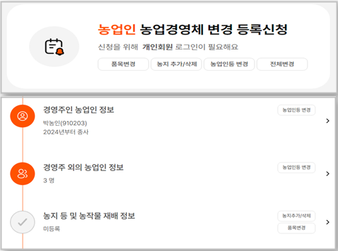 (농업경영체 변경신청) (경영체 등록 농지 조회 및 변경)