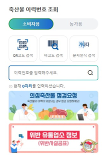 소비자는 맞춤형 이력번호 조회 기능으로 축산물의 종류, 등급, 도축경과일 등 주요 정보를 한눈에 파악할 수 있어 객관적 정보에 기반한 합리적 소비가 가능하다. 또한, 이력번호 표시 위반업소 조회 기능과 이력번호 허위표시 의심 축산물 점검요청 기능을 통해 투명한 정보를 바탕으로 안전한 축산물 구매를 할 수 있다.
