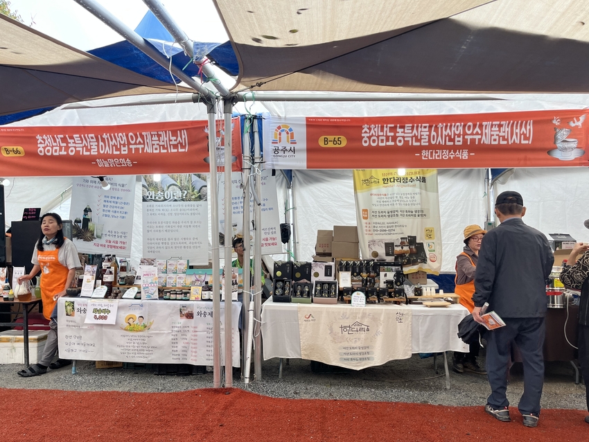 충남도가 공주 금강신관공원에서 열리고 있는 ‘제71회 백제문화제’ 에서 충남 농촌융복합산업 제품을 소개하는 자리를 마련했다.