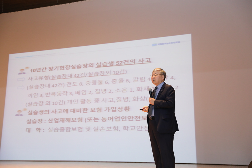 한농대는 장기현장실습생에 대해 년간 4차례 소집 안전교육을 실시하고 있으며, 이번 소집 안전교육은 2월(2.18.∼2.19), 5월(5.14.), 8월(8.1, 8.8.)에 이어 금년 마지막 교육이다.