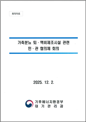 대한한돈협회(회장 이기홍)는 지난 12월 2일 기후환경에너지부와 국무총리실, 농협, 비료업계 등이 참석한 ‘퇴.액비 제조시설 민관 협의체’에 참여하여, 지원사업 대상 확대, 운영비 지원 협조 등을 요구하였고, 기후환경에너지부는 이를 적극 수용키로 했다고 밝혔다.