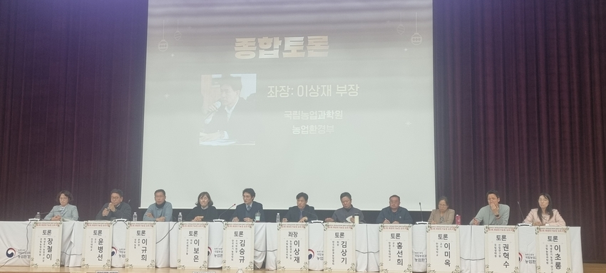 이어 이상재 국립농업과학원 농업환경부장이 좌장으로 진행한 종합토론에서 학계 및 소비자체, 현장 유기농업실천농가 등 관계전문가들이 토론자로 참석해 재생유기농업 실천 전략 마련을 위한 다양한 발전 방안을 논의했다.