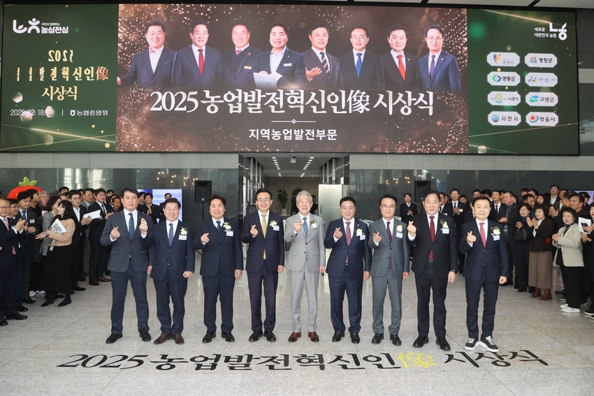 「2025 농업발전혁신인像」에는 경기 광명(시장 박승원), 강원 평창(군수 심재국), 충북 영동(군수 정영철), 충남 아산(시장 오세현), 전북 정읍(시장 이학수), 전남 나주(시장 윤병태), 경북 고령(군수 이남철), 경남 사천(시장 박동식) 등 총 8개의 지자체가 수상의 영예를 안았다.