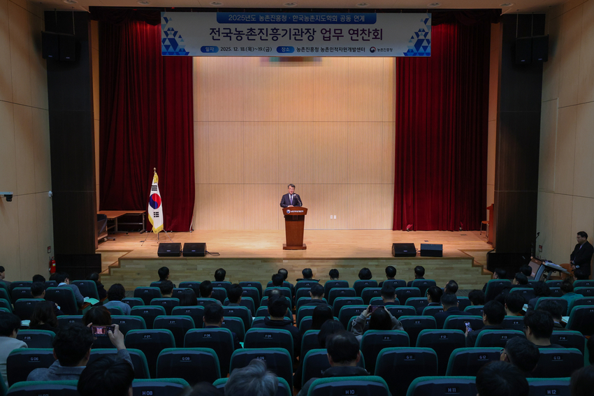 농촌진흥청 (청장 이승돈)은 12월 18일 농촌인적자원개발센터 (전북특별자치도 전주) 새롬홈에서 전국 도 농업기술원 국·과장, 시군농업기술센터 소장, 한국농촌지도학회 회원 등 200여 명이 참석한 가운데 업무 연찬회를 개최했다.