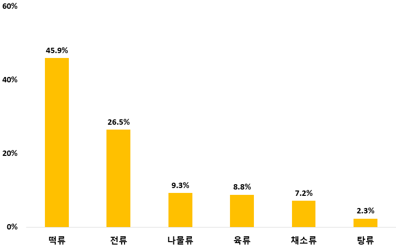 또한, 차례를 지낸다고 답한 응답자도 음식 가짓수와 양을 줄이거나 반조리·완제품을 구매하는 등 준비 과정을 간소화하겠다는 뜻을 내보였다. 반조리 · 완제품은 떡류·전류 같이 조리 과정이 복잡한 품목 위주로 구매하겠다고 밝혔다.
