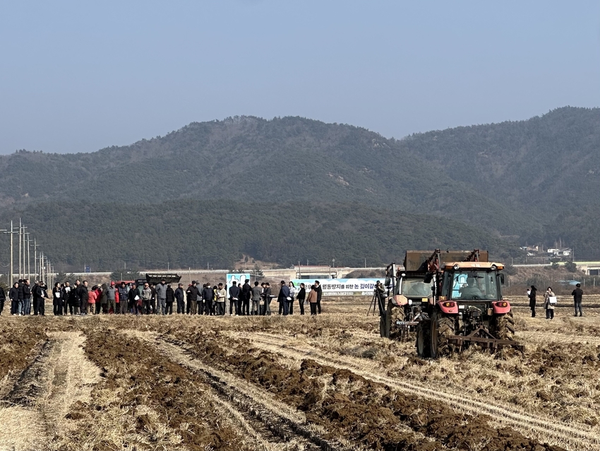 농림축산식품부(장관 송미령, 이하 농식품부)는 전라남도, 농촌진흥청과 협력하여 2월 5일(목) 전라남도 영암군 (영암군 학산면 용소리 일원)에서 벼 재배 농업인 피해 예방의 일환으로 왕우렁이 개체수 감소와 월동 방지를 위해 논 깊이갈이 시연회 및 예방대책 행사를 개최했다.