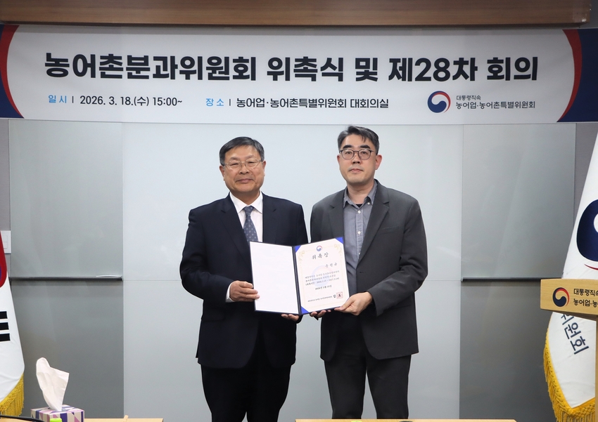 대통령직속 농어업․농어촌특별위원회 (위원장 김호)는 3월 18일 위원회 대회의실에서 제28차 농어촌분과위원회를 개최하고, 제7기 농어촌분과위원회 위원 위촉식을 진행했다.