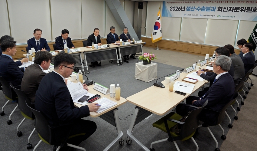 한국농수산식품유통공사(aT, 사장 홍문표)는 27일 서울 aT센터에서 국정과제 이행력 제고 및 혁신전략 실천을 위한 중점 사업 추진계획에 대해 생산․수출분과 혁신자문위원회를 개최했다.